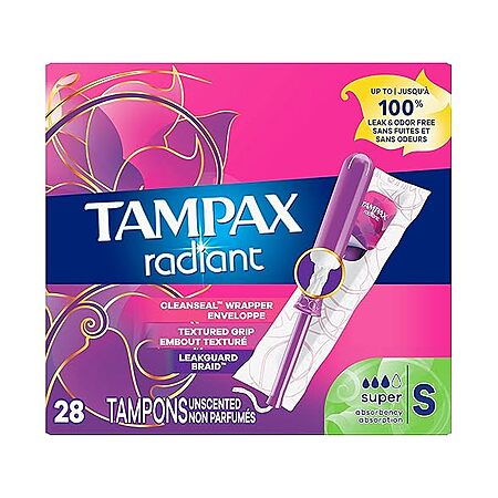 Woot! has Tampax Radiant Tampons, Super Absorbency, 28-Count on sale for $3.99.