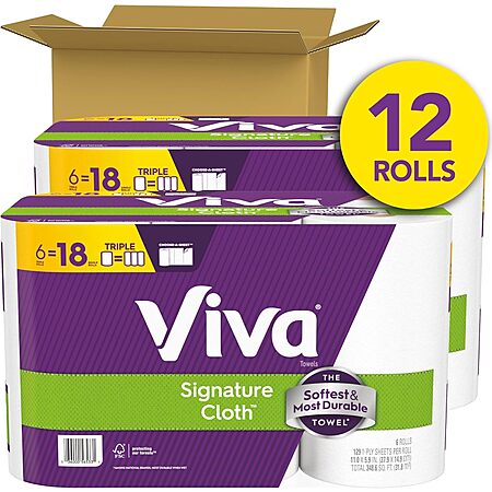 [S&S, AC] $18.84*: 12-Pack 129-Sheet Viva Signature Cloth Paper Triple Roll Towels at Amazon