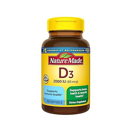 $5.99*:Nature Made Vitamin D3 2000 IU, 250 Softgels – Bone, Teeth, Muscle & Immune Health Support, 250-Day Supply