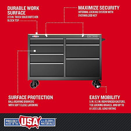 CRAFTSMAN 52" L x 37.5" H 7-Drawer Rolling Black Butcher Block Work Bench $299 at Lowe's w/ Free Store Pickup