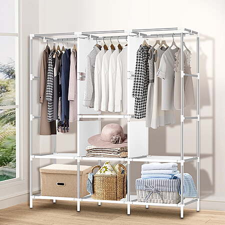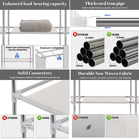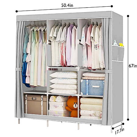 | Product Description: | 👗YOUPINS Clothes Organizer offers a sturdy and spacious solution for keeping your wardrobe neat, organized, and dust-free. Built with a heavy-duty metal frame and a breathable non-woven fabric cover, it combines durability with a modern look. The organizer includes multiple hanging rods and shelves to hold coats, dresses, shoes, and accessories. Easy to assemble and lightweight, it’s ideal for bedrooms, dorm rooms, apartments, or rental spaces, helping you maximize storage while keeping your home tidy. 🌟 ❤️【STRONG CONSTRUCTION 】The fabric wardrobe is made of rigid metal tubes, thick non-woven fabrics and high-quality plastic connectors, giving you spacious storage space and strong load capacity for your long term and all-around storage needs. ❤️【EASY TO INSTALL】 The portable closet comes with clear and understandable installation instructions, and you can assemble your closet in minutes without the use of tools. You don't need to worry about missing parts because we provide extra parts in the package. ❤️【DUST-PROOF AND BREATHABLE COVER】To make sure that your clothes away from dust and keeps them fresh, clean and tidy, the breathable portable wardrobe storage closet provides great protection for your clothes, it is equipped with a T-shaped zipper and Velcro, lidded with dust-proof and waterproof fabric cover which is easy to clean with damp cloth. ❤️【STURDY ARCHITECTURE】The wardrobe closet for hanging clothes for hanging clothes is selected by durable non-woven fabric and high quality zipper, made of strong steel tube and strengthened PP plastic connectors, the diameter of the steel tube is 16 mm that is thicker than most tubes on the market and 120 g/m² non-woven fabric, so it provides super load capability to ensure sturdier and more stable, not be bent easily, will prove to be durable and works for years. ❤️【SPACIOUS WARDROBE COMPARTMENTS】Portable wardrobe closet with 3 hanging rods perfect for hanging tops, coats, and sweaters. 4 storage shelves perfect for storage of items such as handbags, hats, underwear and socks. It adds more space for all your clothes and accessories and makes your home neatly organized to realize the rational use of space.Designed with side pockets to store small objects, like towels, scarf or socks. There is extra space for placing shoes at the bottom, and makes it easier to clean the room at the same time. What a thoughtful design! ❤️【SPACE SAVING ORGANIZER】The size of wardrobe closet is 50.4"length x 17.7"width x 67"height, provides spacious storage space and strong load capacity. That creates a spacious space for bedroom, cloakroom, clothing store, laundry room, to meet your long term and all aspect storage need. ❤️【APPLICABLE SCENARIOS 】1. Fabric closet have strong convenience and are suitable as temporary wardrobes for dormitory students and renters. 2. Also be used as extra storage space in your home to help you use space efficiently, great choice for bedroom and walk-in closet! |