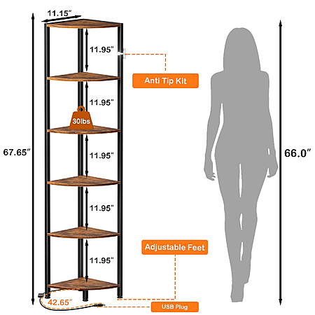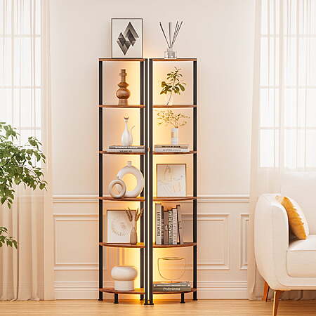 | Product Description: | Is your home in need of a stylish and functional storage solution? Look no further than the Satifur Corner Bookshelf! This innovative corner bookcase is the perfect blend of design and practicality, providing an elegant touch to any room while optimizing space. The built-in LED light strip with multiple colors adds a cozy ambiance, ideal for enhancing your gaming experience or movie nights. Features: - Multiple color options to create a cozy atmosphere. - Ideal for living rooms, bedrooms, kitchens, offices, and more. - Perfect for decorations, photos, plants, and more. - Quick and easy assembly in just 20 minutes. - High-quality materials and anti-toppling device ensure safety. Specifications: Material: Particle Board;Metal Number of Shelves: 6 Dimensions: 11.15"D x 11.15"W x 67.65"H Product Care Instructions: Wipe with Dry Cloth Assembly Required: Yes Weight: 13.42 Pounds Package include: 1 x booshelf 1x led strip LED Light Strip: Create a cozy atmosphere at night, enhance the gaming experience, or add ambiance when watching movies with adjustable LED light strips. 7 different color optional, you can adjust to complete atmosphere as favor. Well Fit for Any Corner: Utilize empty corners in any room to add a stylish touch to your decor. It can be used as bookcase and bookshelf, display shelf, plant shelf, etc. Storage & Display: Provides storage functions and unique display effects for decorations, photos, plants, toys, and more. Ease of Installing: Simple and straightforward assembly process, each part was labeled, set up in 20 minutes without special tools or skills. Sturdy & Stable: Crafted from high-quality materials, built to last with fully guaranteed stability and safety. |