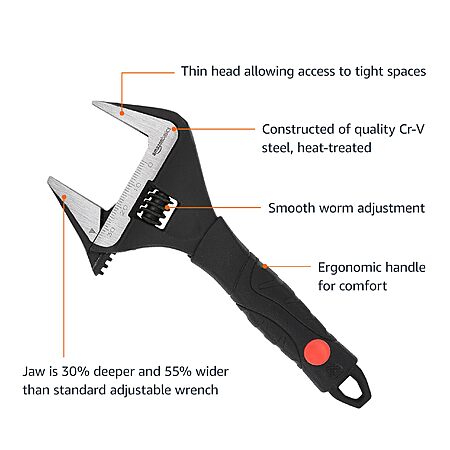 Amazon.com has Amazon Basics Plumbing Adjustable Wrench with Soft Grip, Wide Mouth, 6.34 x 2.83 x 0.59 inches (LxWxH) on sale for $6.56. Shipping is free with Prime or on $35+ orders.