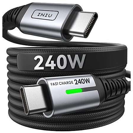 INIU USB C to USB C Cable, 240W Fast Charging Type C Charger Cord, Braided USBC [6.6ft+6.6ft Black] $10.53