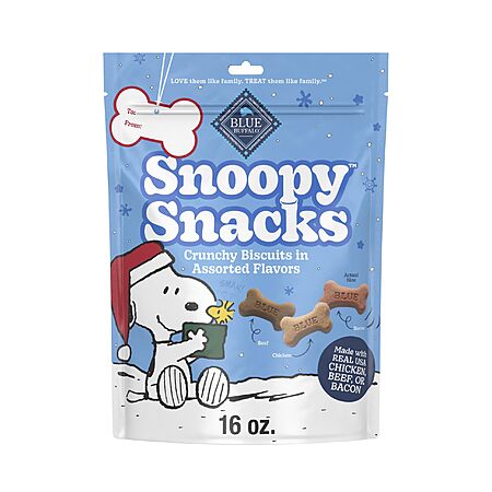 Blue Buffalo Snoopy Snacks Crunchy Dog Treats,Assorted Flavors, Chicken, Beef, or Bacon, Small Size, 16oz. Bag $3.98 or less clip Q and S&S Prime Ship