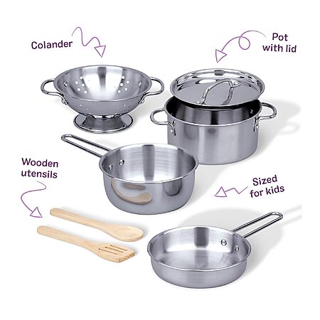 Melissa & Doug Stainless Steel Pots & Pans, 8 Piece Premium Play Kitchen Set $16.18 +FS w/Prime