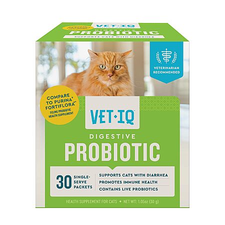 VetIQ Cat Probiotic Powder, Treats Diarrhea and Food Sensitivity, Chicken Flavored Single-Serve Packets for Indoor/Outdoor Use, 30 Count $14.29