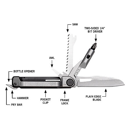 The Gerber Armbar Trade Multi-Tool is an everyday carry multitool for quick access to 8 tools, all in one place. From on-the-job moments to the outdoors, this handy tool is more than just a pocket knife. It features a two-sided 1/4" bit driver, pry bar, saw, and even a hammer. Cutting a slice of cheese off the block for a midday snack to fixing your bike before hitting the trails, you'll never have to search past your pocket for the right tool for the job.