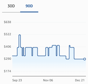 This is, by far, the lowest price seen on Amazon. The listed price right now is $289.99, and it sometimes goes up to ~$400. See screenshot of Amazon price history. It was last listed on SlickDeals in