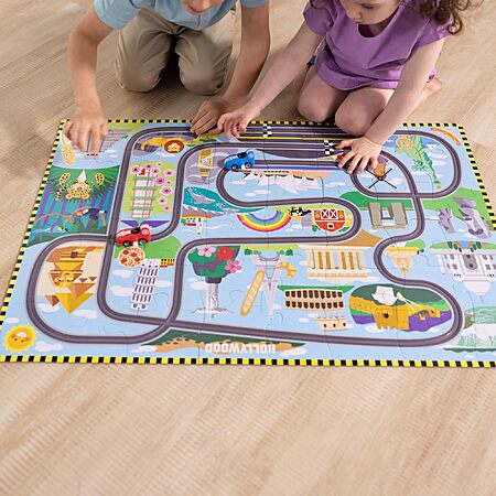 Melissa & Doug Race Around The World Tracks Cardboard Jigsaw Floor Puzzle and Wind-Up Vehicles (48 Pcs) for Preschoolers and Kids Ages 4+ - FSC Certified $12.24