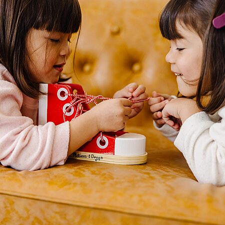 Melissa & Doug Deluxe Wood Lacing Sneaker - Learn to Tie a Shoe Educational Toy $11.99 +FS w/Prime