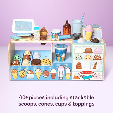 Melissa & Doug Wooden Scoop and Serve Ice Cream Counter (28-Piece Play Set) - $50.39