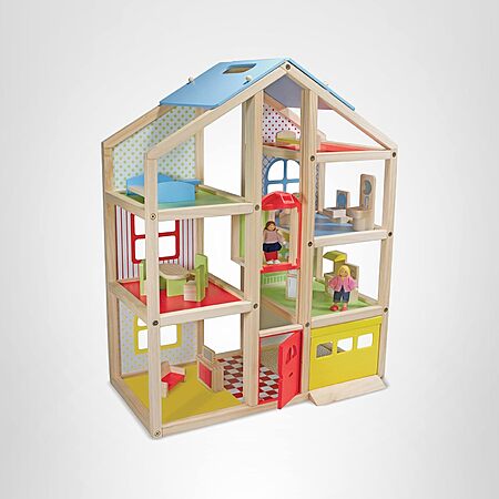 Melissa & Doug Hi-Rise Wooden Dollhouse with 15 pcs Furniture - Garage and Working Elevator $86.79