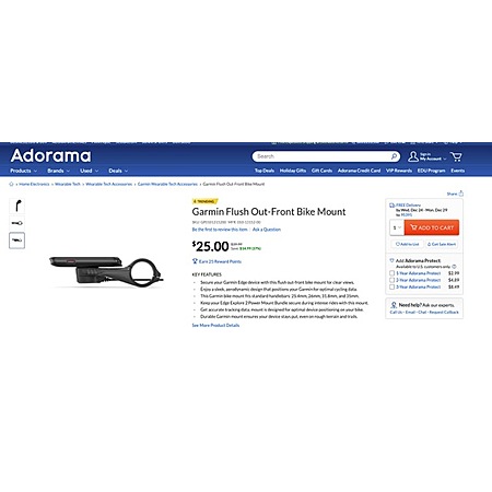 Secure your Garmin Edge device with this flush out-front bike mount for clear views.Enjoy a sleek, aerodynamic design that positions your Garmin for optimal cycling data. This Garmin bike mount fits standard handlebars: 25.4mm, 26mm, 31.8mm, and 35mm. Keep your Edge Explore 2 Power Mount Bundle secure during intense rides with this mount. Get accurate tracking data; mount is designed for optimal device positioning on your bike. Durable Garmin mount ensures your device stays put, even on rough terrain and trails. |