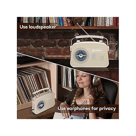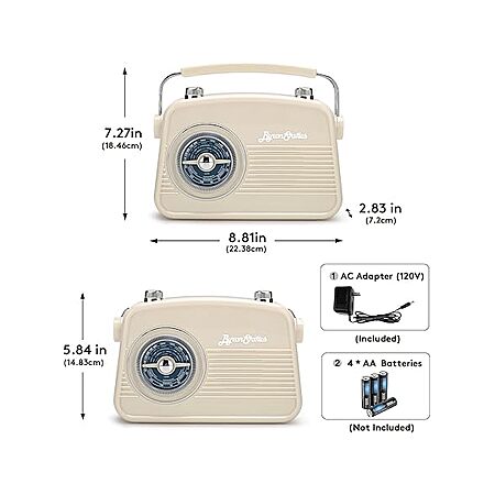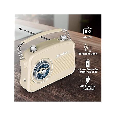ByronStatics Retro Vintage AM/FM Radio - Small Portable Radios Vintage/Retro with Headphone Jack, Large Analog Rotary Tuning Dial - Power Plug or 4 x 1.5V AA Battery $9.99