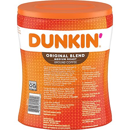 Dunkin' Original Blend Medium Roast Ground Coffee, 30 Ounce - YMMV $16.39