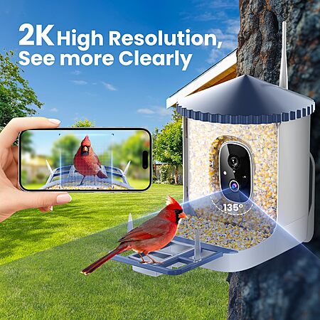 SOLIOM Smart Bird Feeder with with 2K Camera and 3W Solar Panel, BF02 (Blue Only)