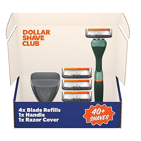 Dollar Shave Club | Travel Shave Set | 4 Extra Close Refill Cartridges, 1 Handle (Green), 1 Razor Cover - $8.99 or less