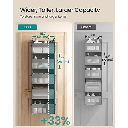 • Stable Door Fit: With specially designed metal hooks and internal support plates, each door organizer remains stable and resists wobbling. It fits over smooth doors 1.6"-2" thick and is not suitable for irregularly shaped or thinner doors