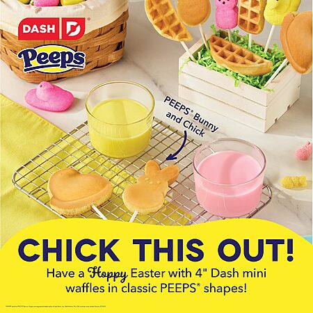 Model: PEEPS x Dash Chick Mini Waffle Maker for Individual Waffles, Hash Browns, Keto Chaffles with Easy to Clean, Non-Stick Surfaces, 4 Inch - Yellow