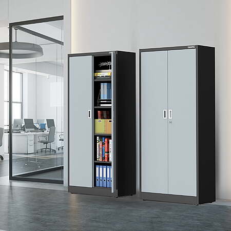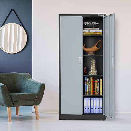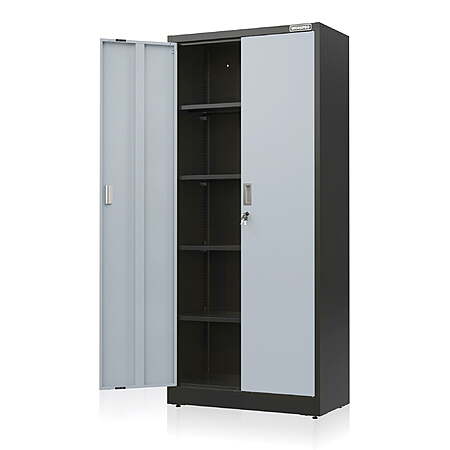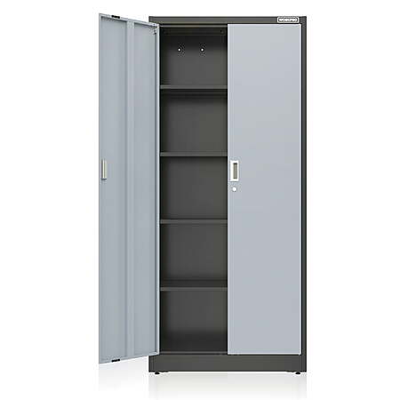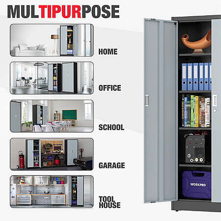 WORKPRO Metal Garage Storage Cabinet with Locking Doors and Adjustable Shelves 71 inches, Grey & Black $123.5