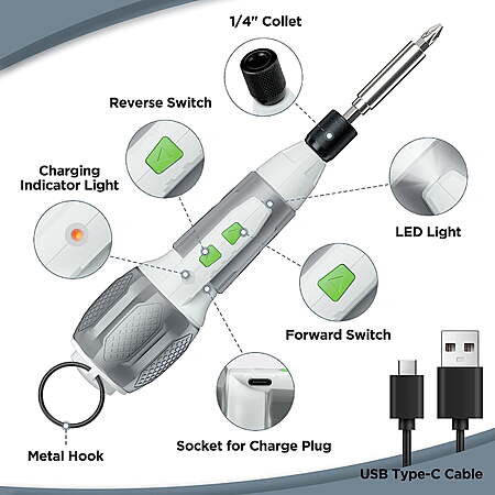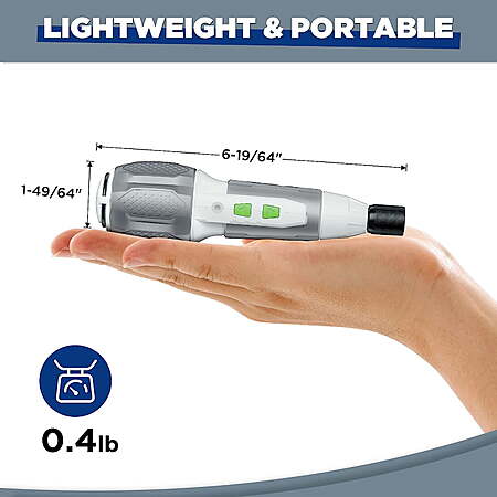 | Product Description: | For 25 years, WORKPRO has adhered to its simple core value -- to support and encourage the "Can Do" attitude of its customers with high-quality, affordable tools that are among the most dependable performance tools on the market. WORKPRO is part of the family of companies of Hangzhou GreatStar Industrial Co., Ltd., a leading global developer, manufacturer, and supplier of tools found in over 100 countries throughout the world. Get the job done quickly and easily with the efficient performance of our WORKPRO 4V Cordless Screwdriver. The electric screwdriver's high-quality motor delivers maximum torque and speed, while the keyless chuck allows for quick bit replacement. Note: The bits need to be used with a holder. Our lightweight cordless screwdriver is only 0.4lb, designed to fit comfortably in one hand and tight spaces. The surface is made of high-quality material for a comfortable grip, and the bright front LED light illuminates your work in dark environments. With both electric and manual modes, our 2-in-1 cordless screwdriver is perfect for heavy-duty jobs and light-duty work alike. And when the power is turned off, you can continue using it manually to finish the job. Charging is a breeze with our cordless screwdriver's built-in lithium-ion battery and type-C USB charging cable. Charge it from your phone charger, laptop, car, or power bank USB port for ultimate convenience. Our rechargeable screwdriver set is perfect for all your daily home repair needs, from fixing pictures to assembling furniture. With 7 screwdriver bits included, you'll have everything you need to tackle any job around the house. Includes: 1'' bits: T20, T15, PH1, PH2, PH31/8, 1/4; 4'' bits: PH2-5 |