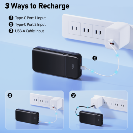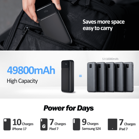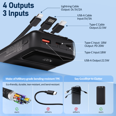 Yelomin 49800mAh Power Bank Portable Charger with Built in Cables,4 Outputs 3 Inputs 22.5W Fast Charging with LED Display $17.43