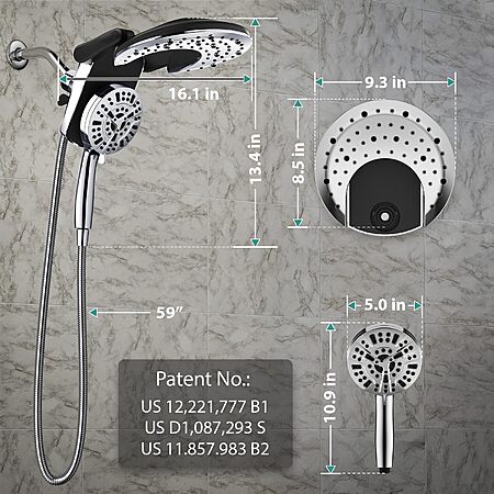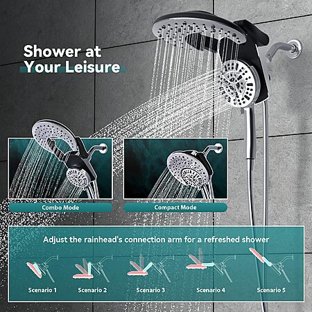 Rain Shower Head with Handheld: Foldable High Pressure Shower Heads with Handheld Spray Combo, 9 Spray Settings/Modes $49.39