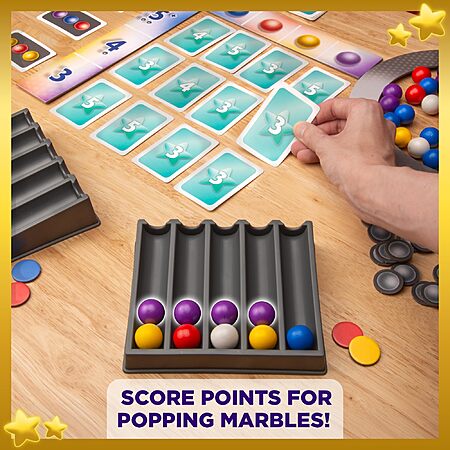 - POP POP POP - Create a chain reaction and rack up the points as you clear your tray of all your marbles