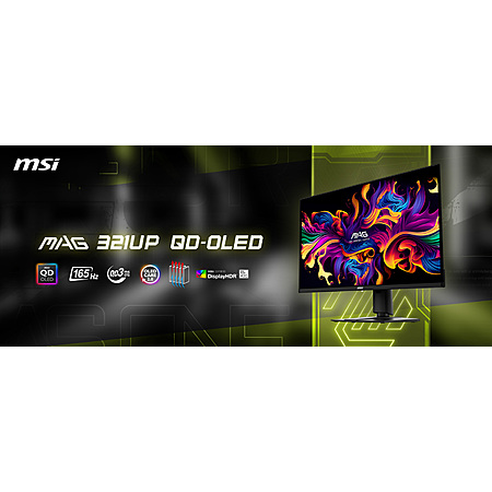 Model: MSI MAG 321UP QD-OLED 32-inch QD-OLED 3840 x 2160 (UHD) Computer Monitor, 165Hz, Adaptive-Synch, HDMI, Display Port, VGA Port, VESA Mountable, Tilt, Height Adjustable, Speaker, 0.03ms, Black