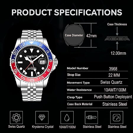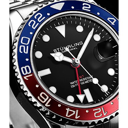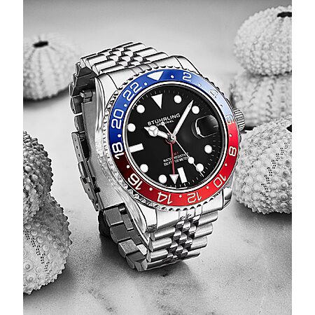 Stuhrling Original Men's Stainless Steel Jubilee Bracelet GMT Watch Quartz, Dual Time, Quickset Date with Screw Down Crown, Water Resistant up to 10 ATM $87.95