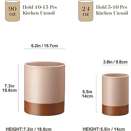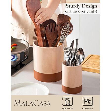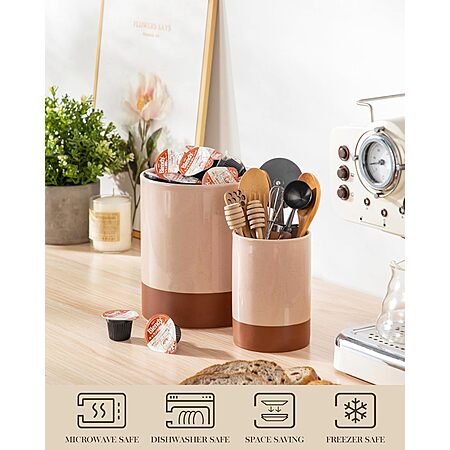 Prime Members: 2-Piece Malacasa Ceramic Utensil Holder Organizer (7.3" & 5.5", Khaki Pink) $15.04, (Khaki Gray) $15.89 + Free Shipping