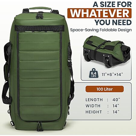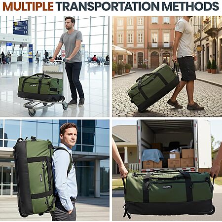 Fanwoli 30" 100L Waterproof No-Sag Rolling Duffel Bag with Wheels & Backpack Straps (Green) $39.41, (Blue) $43.19 + Free Shipping w/ Prime or on $35+