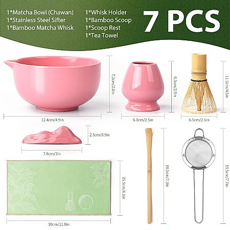 taodiding via Amazon [amazon.com] has 7-Piece Qingshi Matcha Whisk Set (Pink) on sale for $17.98 - 50% off when you enter the coupon code 3YJ8HUPK = $8.99. Shipping is free w/ Prime or on $35+.