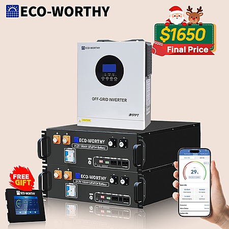 2-Pack Eco-Worthy 48V 100Ah Battery + 5.5KW 48V Off-Grid Inverter Home Backup Power $1650 + FS