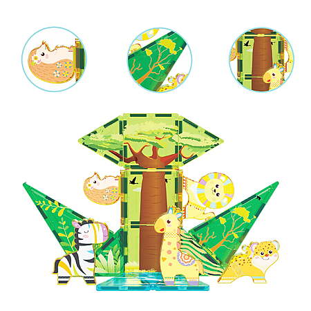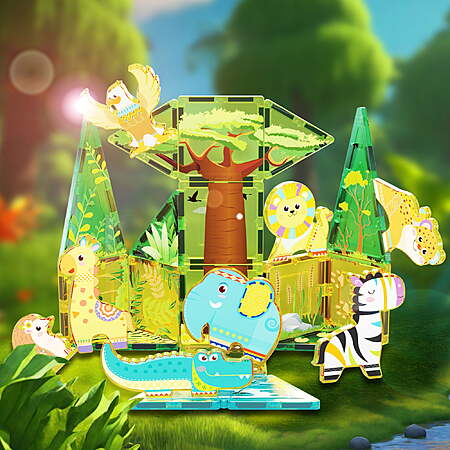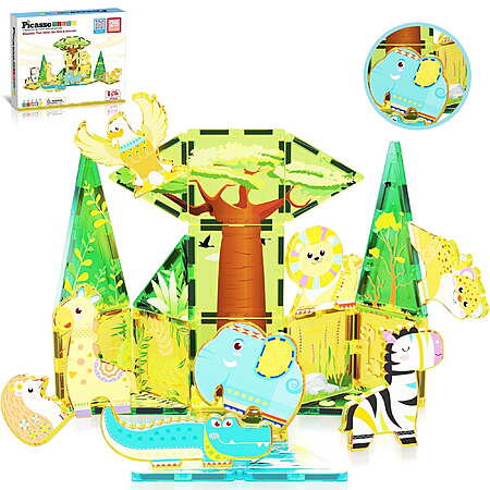 | Product Description: | Unleash imaginative play and educational fun with the PICASSO-TILES 26-piece Safari Theme Magnetic Tiles set. This engaging construction toy includes eight vibrant wildlife action figures like an alligator, tiger, and elephant, along with safari-printed tiles, squares, and triangles, allowing children aged 3 and up to build and explore. Crafted from safe, BPA-free plastic with strong magnets and smooth, rounded edges, these durable blocks foster creativity, fine motor skills, and STEM learning. It encourages open-ended play, helping kids develop spatial thinking and logical reasoning while reducing screen time, making it a wonderful gift for any occasion. 26-piece set of PICASSO-TILES Magnetic Tiles. Features a unique safari theme. Includes 8 distinct wildlife character action figures: alligator, hedgehog, tiger, eagle, elephant, giraffe, lion, and a zebra. Comes with safari printed magnet tiles. Contains specific geometric shapes: 5 equilateral triangles, 5 isosceles triangles, and 8 squares. Crafted from durable, non-toxic ABS plastic. Designed with smooth surfaces and round edges for child safety. Equipped with strong magnets for secure connections and easy stacking. Standard size ensures compatibility with most other magnetic tile brands. Aids in developing intelligence, perception, and potential. Helps children recognize 3D space and geometric concepts. Supports cognitive knowledge acquisition and counting practice. Encourages early exploration of architectural design. Facilitates building various structures and engaging in educational activities. Promotes open-ended play. Fosters Montessori-style learning and exploration. Ideal for preschool, kindergarten, primary, elementary, and middle school students. Suitable for use in home environments, daycare centers, and for both indoor and outdoor student activities. Makes a thoughtful gift for occasions such as birthdays, Christmas, or other holidays. CREATIVE CHRISTMAS (Navidad) HOLIDAY GIFTS: Magnet tiles combine learning, STEM education, and endless fun – an ideal December Presence for boys and girls, preschool, kindergarten, toddlers, elementary ages 3+ |