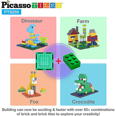| Product Description: | Unleash your child's creativity with the PICASSO-TILES 259 PC Magnetic Tile and Brick Compatible Set. This versatile building kit includes 9 magnetic brick tiles and 250 small and large construction bricks that can be easily connected to create towering structures up to 24 inches tall. The strong magnets allow for quick and secure building, while the open-ended design encourages endless imaginative play. Crafted from durable, non-toxic ABS plastic, this set is perfect for kids aged 3 and up, offering hours of hands-on, STEM-focused fun. BUILD YOUR BIGGEST IDEAS WITH MAGNETIC TILES - EMPOWER KIDS TO DREAM DESIGN AND DISCOVER: PICASSO-TILES has combined the world's best two beloved construction toys to another whole new level! The 259pcs magnetic brick tile building set includes 6 magnetic brick tiles and 250 small and big building bricks for more complex structures and creations STRONG MAGNETIC BLOCKS / TILES WITH EXCELLENT HOLDING POWER: Unleash your child’s creativity with our Building Blocks Toy Set (Magnet Tiles, Marble Run, or Race Track)! This Educational Construction toy lets kids explore and build. With magnetic block tiles designed for easy stacking and strong connections. These PICASSO-TILES colorful tiles encourage open-ended play, fostering STEM learning, Montessori-style exploration, and spatial awareness. SAFE & DURABLE KIDS MAGNETIC TOY: PICASSO-TILES Building blocks are made of safe and durable non-toxic ABS plastic. A smooth surface and round edge design won't scratch or hurt your little kids' hands. Besides, each piece is designed with standard size, ensuring compatibility with most brands in the market, so you can expand and complement your existing tiles with this construction toys set to collect every shape or color. More tiles, more fun! CREATIVE IMAGINATION: PICASSO-TILES Magnetic building tiles are educational toys that can help develop and stimulate intelligence, perception, and potential. Children can learn to recognize 3D space and geometry, gain cognitive knowledge, practice counting, and explore architectural design from a young age. By experimenting and innovating with magnet tiles, they can build structures and engage in educational activities. PERFECT GIFTS FOR BOYS, GIRLS, TODDLERS, KIDS: DIY entertaining construction toys created by senior designers for easy learning, teaching and happy childhood. These toys are Great gift for preschool, kindergarten, primary, elementary, and middle school students, as well as for use at home, in day care centers, and for indoor or outdoor student activities. These Construction STEM Building Blocks Educational Toy (Magnetic Tiles, Magnet Marble Run, Race Track, Bricks or Building Blocks Set) can be gifted on any occasion like birthdays, Christmas, or any holidays / Events. CREATIVE CHRISTMAS (Navidad) HOLIDAY GIFTS: Magnet tiles combine learning, STEM education, and endless fun – an ideal December Presence for boys and girls, preschool, kindergarten, toddlers, elementary ages 3+ |