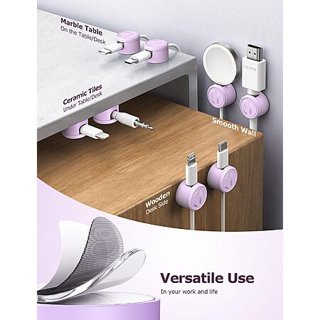 - ✅【Acrylic Adhesive No-Residue or Damage】Enhanced acrylic adhesive pad ensures firm and long-lasting stickiness that leaves no residue or damage when removed on various surfaces like wood, glass, or ceramic tiles, making it perfect for cable management