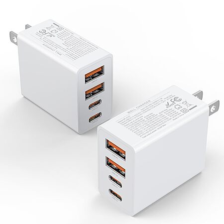Model: 2Pack USB C Charger Block, 40W Fast USB C Wall Charger 4-Port PD Power Adapter + QC Wall Plug Multiport Type C Charging Block Cube for iPhone 16 15 14 Pro Max XR XS 8 7, iPad, Galaxy, Tablet - White