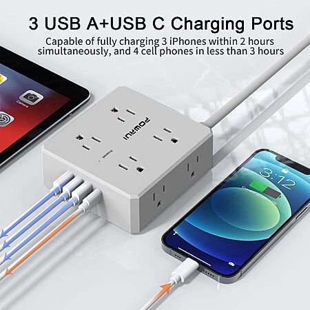 POWRUI via Amazon [amazon.com] has 6' POWRUI 8-Outlet Power Strip w/ 3 USB-A & 1 USB-C Ports (Grey or White) for $8.09. Shipping is free w/ Prime or on $35+.