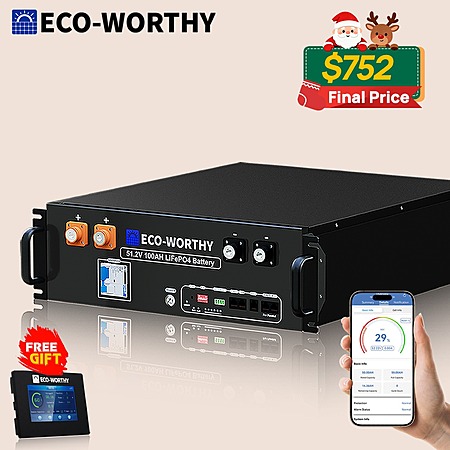 ECO-WORTHY 48V 100Ah LiFePO4 Battery + 48V Battery Monitor $752 + Free Shipping