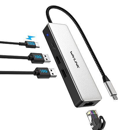 Model: Wavlink USB C to 2.5G Gbps Ethernet Adapter USB C Hub with 85W PD Charging, 1*10G USB-C, 2*10G USB-A, 1*2.5G Ethernet Port, for MacBook Pro, Acer...