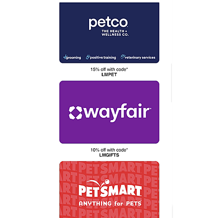 Giftcards.com Petco GC 15% off, Petsmart, Wayfair 10% off + more 42.5