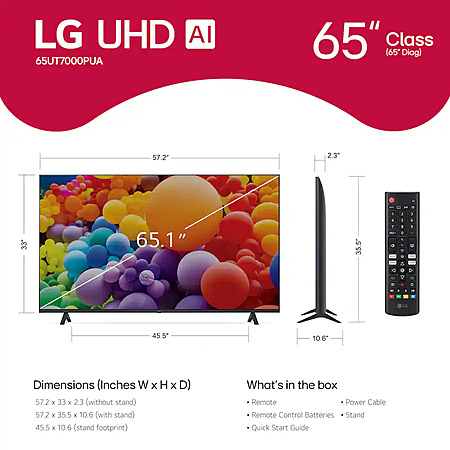65" LG 65UT7000PUA UT70 Series 4K UHD Smart webOS TV (2024) $329.99 + Free Shipping