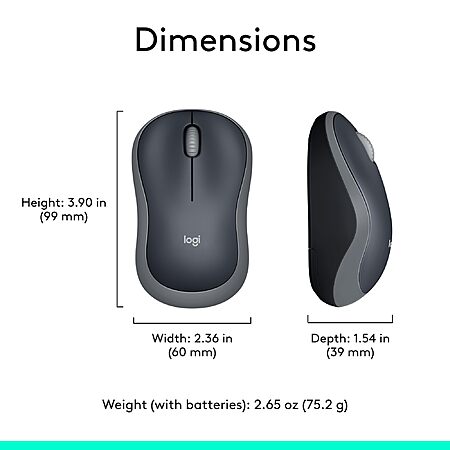Model: Logitech M185 Wireless Mouse, 2.4GHz with USB Mini Receiver, 12-Month Battery Life, 1000 DPI Optical Tracking, Ambidextrous PC/Mac/Laptop - Swift Gray