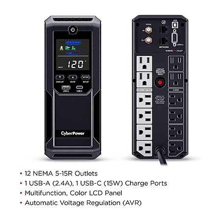 CyberPower CP1350AVRLCD3 Intelligent LCD UPS System, 1350VA/815W, 12 Outlets Refurbished $129.99 @ Woot!
