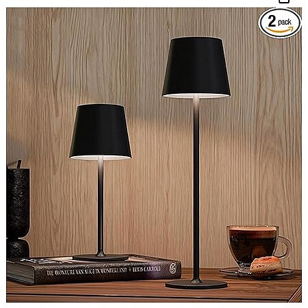 2-Pack Cordless Metal Table Lamp, 3 Adjustable Heights, 5400mAh Rechargeable Battery (black or gold) - $9.99