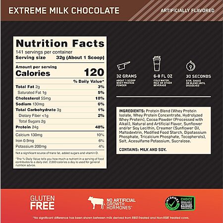 Model: Optimum Nutrition Gold Standard 100% Whey Protein Powder, Extreme Milk Chocolate, 10 Pound (Packaging May Vary)