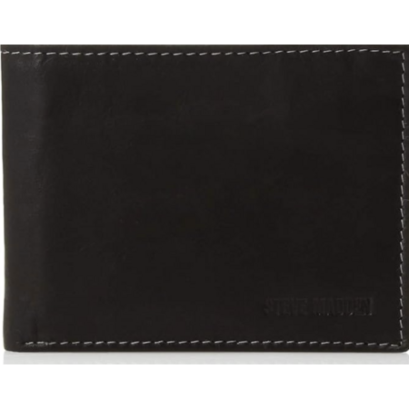 Model: Steve Madden Men's Leather RFID Wallet Extra Capacity Attached Flip Pockets, Brown (Glove), One Size