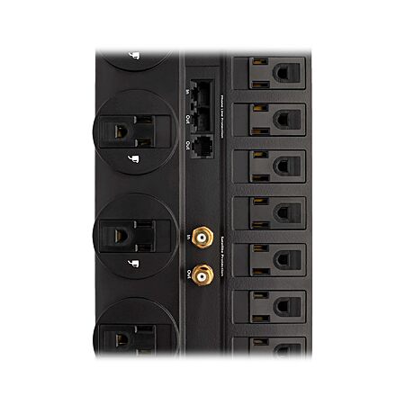 Model: Tripp Lite 12 Outlet Surge Protector Power Strip, 8ft Cord, Right-Angle Plug, Tel/Modem/Coax/Ethernet Protection, RJ11, RJ45, & $250,000 INSURANCE (TLP1208SAT) Black